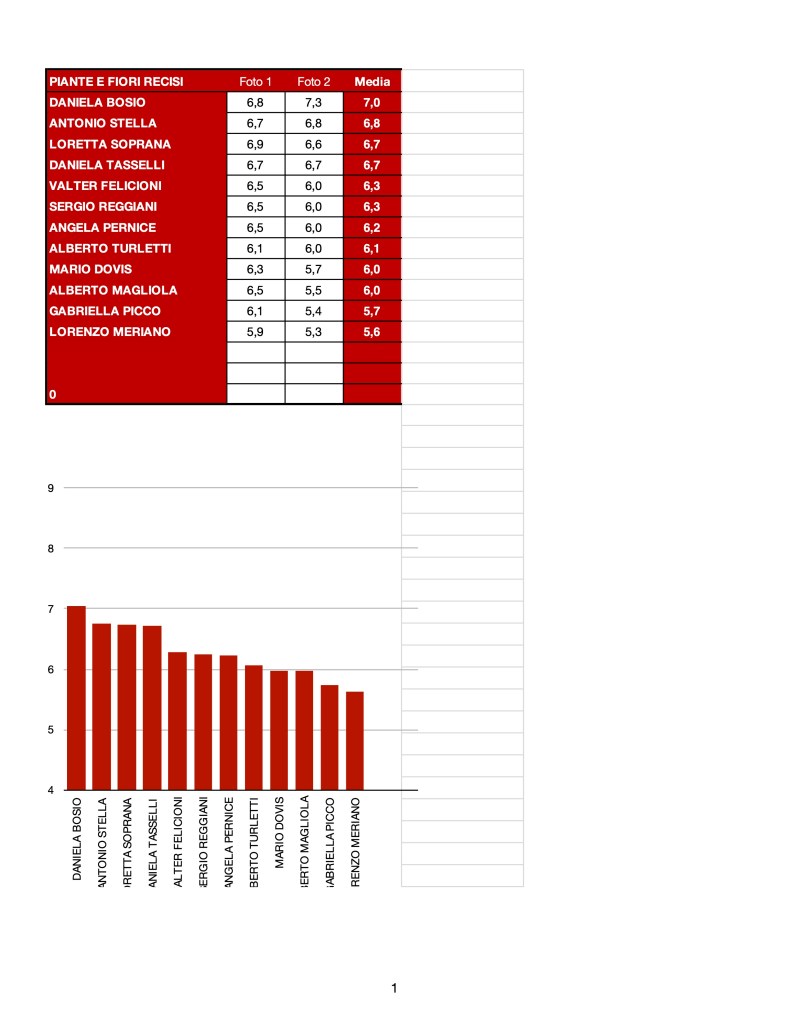 A spiccare nelle votazioni anche questa volta è la quota rosa del Circolo. Daniela Bosio raccoglie la migliore media ed il punteggio più alto del singolo scatto; la segue Antonio Stella al secondo posto in classifica ma tallonato da vicino da Loretta Soprana e Daniela Tasselli.