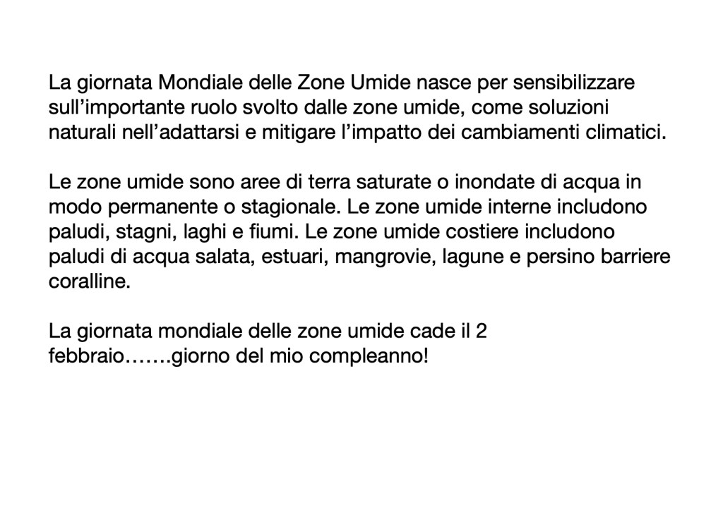 Sergio ha scelto la Giornata Internazionale delle Zone Umide che ricorre il 2 febbraio, giorno anche del suo compleanno…. quindi AUGURI, SERGIO!