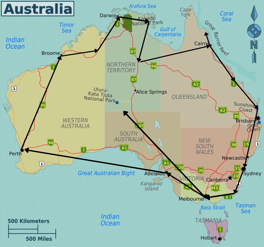 Percorriamo sul camper strade infinite, con segnaletiche curiose che invitano “a rimanere svegli”; subiamo sorpassi azzardati da mezzi ultra-pesanti di 50metri lineari; vediamo purtroppo carcasse di canguri che hanno tentato l’attraversamento nel momento sbagliato.